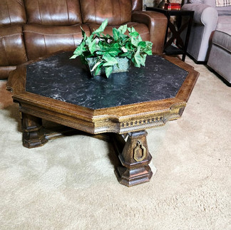 Walnut and Marble Ornate Coffee Table