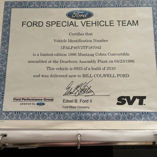 Limited Edition 1996 Mustang Cobra Convertible #833 of 2510